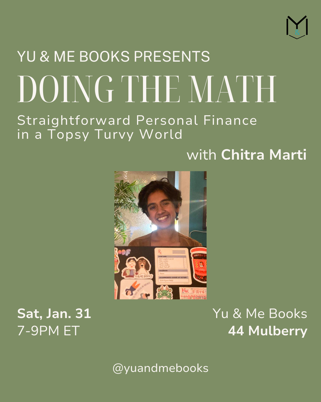 Join us for a financial literacy workshop with Y&M bookseller and economics PhD Chitra for straightforward guidance on your personal finances. Free to attend!