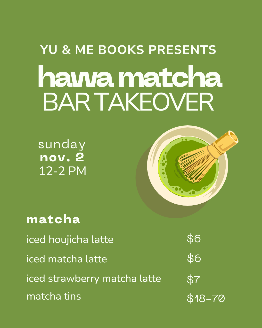 Join us for another bar takeover with Hawa Matcha! They'll be serving their iced houjicha latte, iced matcha latte, and their beloved strawberry matcha latte. They'll also have matcha tins available for sale, ranging from $18-70.