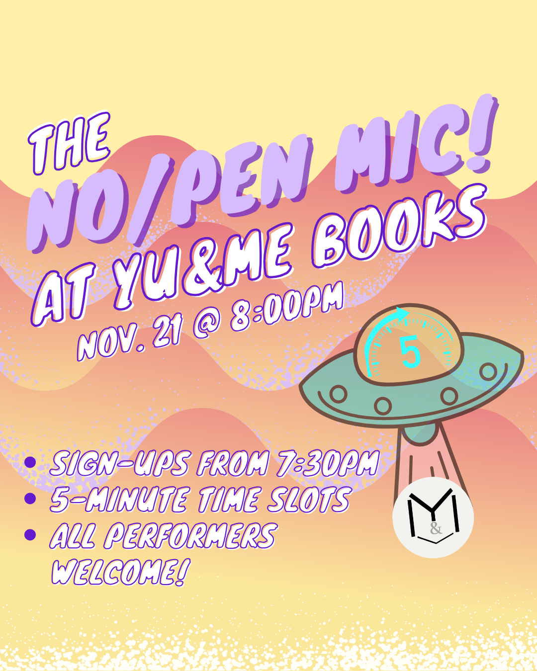 Sign ups start from 7:30PM. 5-minute time slots. All performers welcome! Hosted by Ed Lin